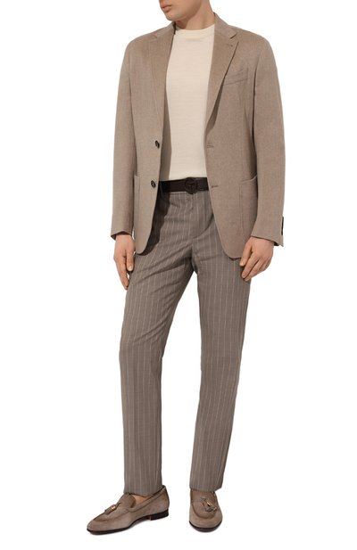 Коричневые лоферы с высокой союзкой и миндалевидным мысом изготовили из мягкой фактурной замши. Бархатистый материал, нарезанный на узкие полосы, искусно переплели вручную, сф ормировав графичный узор. При производстве использовали технологию Goodyear, которая сделала туфли легкими, гибкими и прочными.