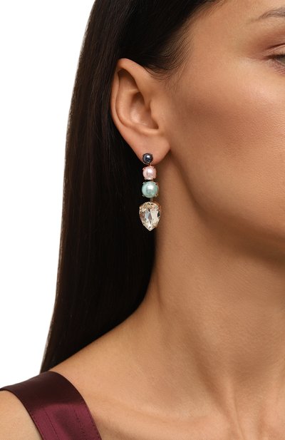 Серьги с застежками-пусетами изготовлены вручную из гипоаллергенного ювелирного сплава. Блеск позолоченного металла перекликается с сиянием крупных прозрачных кристаллов искусной огранки. Крупные фигурные подвески дополнены шелковистой бахромой.