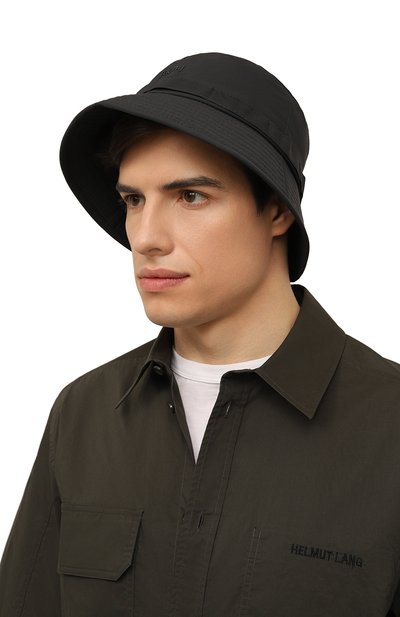Для изготовления панамы с узкими полями использовали плотный полиэстер. Тулью украсили контрастной вышивкой в виде перекрещивающихся стрелок. Аксессуар дополнит повседневный образ и в схожей, и в контрастной гамме.