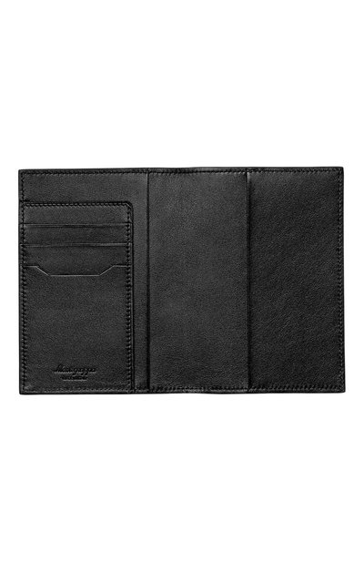 Черный картхолдер двойного сложения изготовили из плотной кожи с тисненым орнаментом в виде повторяющихся перекрещивающихся стрелок. Чтобы сделать фактуру выразительнее, детали футляра отполировали вручную. Внутри — шесть слотов, которые разместили асимметрично.