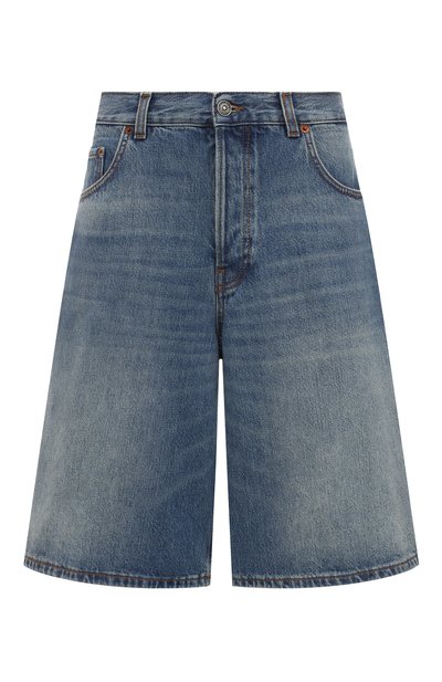 Свободные синие шорты А-силуэта удачно впишутся в непринужденный повседневный образ с рубашкой, футболкой или майкой. Для пошива модели длиной почти до колена использовали прочный неэластичный деним из органического хлопка. Немного выбеленное изделие украсили искусственными заломами, придав ему состаренный вид.
