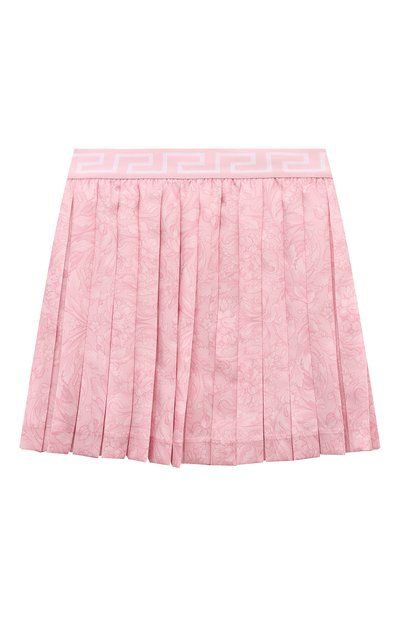 Короткая плиссированная юбка с принтом Barocco Kids в нежно-розовых тонах получилась комфортной и экологичной. Сырьем для тонкой, приятной на ощупь ткани стали переработанные полиэстер и нейлон, сертифицированные по стандарту GRS. Оптимальную посадку на талии обеспечивает широкий эластичный пояс с жаккардовым узором Greca.