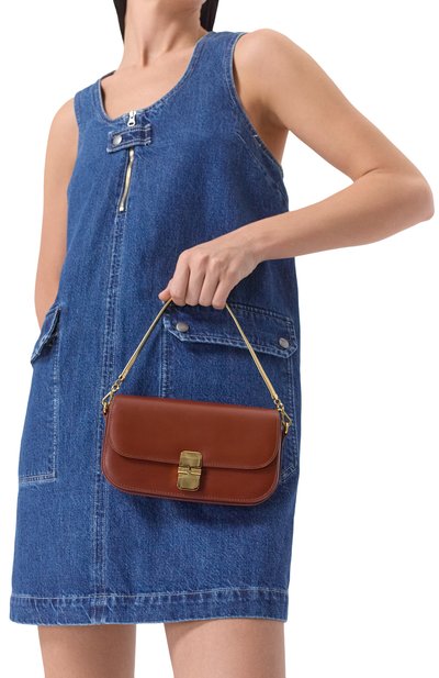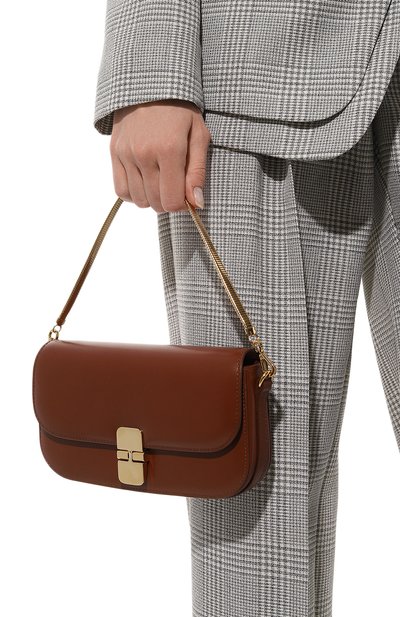 Коричневая сумка Grace может выступить в роли клатча. Для изготовления модели со съемными плечевым ремнем и ручкой-цепочкой использовали гладкую тонко выделанную кожу, отполированную до деликатного блеска. В аксессуар с четырьмя слотами для кредитных карт поместятся смартфон, зеркало, помада и ключи.