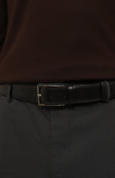 Ремень универсального черного цвета органично впишется в образ любого уровня сложности. Для изготовления модели использовали мягкую тщательно выделанную кожу с фактурным тиснением, отполированную до деликатного блеска. Регулируемый аксессуар дополнили прямоугольной пряжкой из серебристого металла.