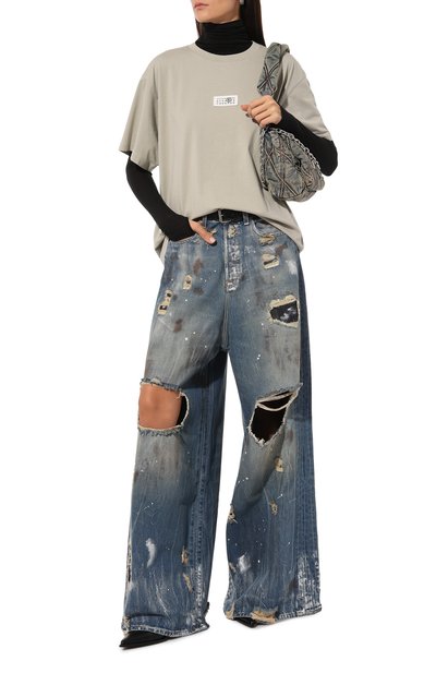 Бежевая футболка силуэта oversize надолго сохранит первоначальный вид. Для создания базовой модели выбрали гладкий длинноволокнистый хлопок, который не подвержен пилингу. В повседневном комплекте изделие подружится с джинсами, бомбером и ремнем в тон, а завершить образ помогут кроссовки цвета хаки.