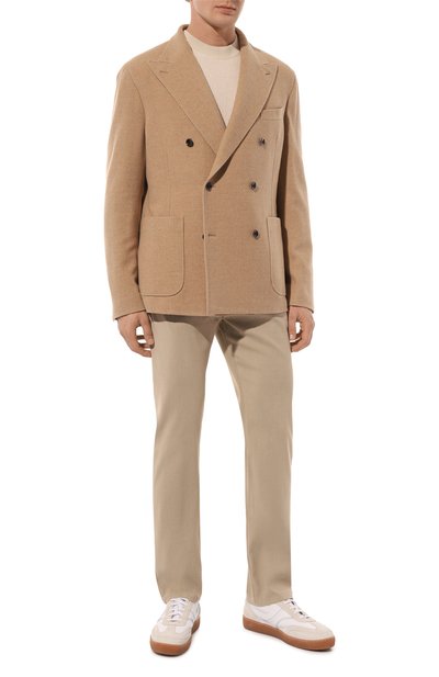 Коричневые джинсы, вдохновленные рабочей одеждой, станут основой разных повседневных образов. Для пошива брюк выбрали мягкий деним с добавлением длинноволокнистого льна, обладающего терморегулирующими свойствами. Изделие украсили миниатюрной нашивкой на накладном кармане сзади, символизирующей дорогу 232, которая проходит через заповедник Oasi Zegna. Декор завершили брендированным патчем на поясе.