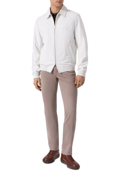 Коричневые джинсы, вдохновленные рабочей одеждой, станут основой разных повседневных образов. Для пошива брюк выбрали мягкий деним с добавлением длинноволокнистого льна, обладающего терморегулирующими свойствами. Изделие украсили миниатюрной нашивкой на накладном кармане сзади, символизирующей дорогу 232, которая проход ит через заповедник Oasi Zegna. Декор завершили брендированным патчем на поясе.