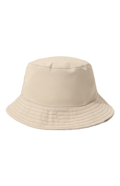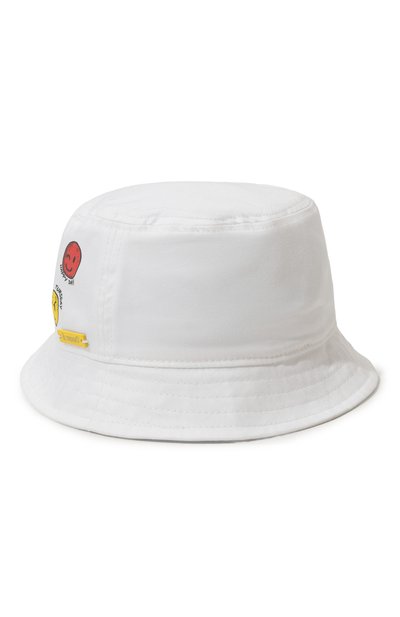 Бежевую панаму выполнили из дышащего фактурного хлопка. На тулье расположили яркую желтую надпись Good Idea и изображение лампочки. Рядом с ними — узкая пластина с логотипом марки.
