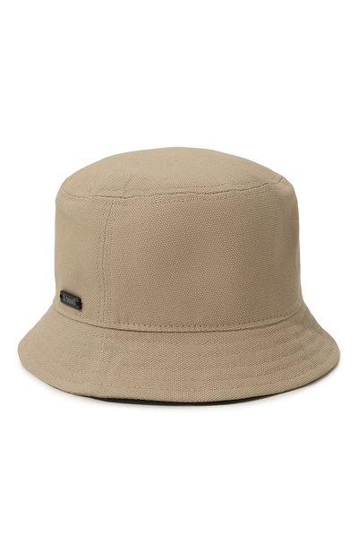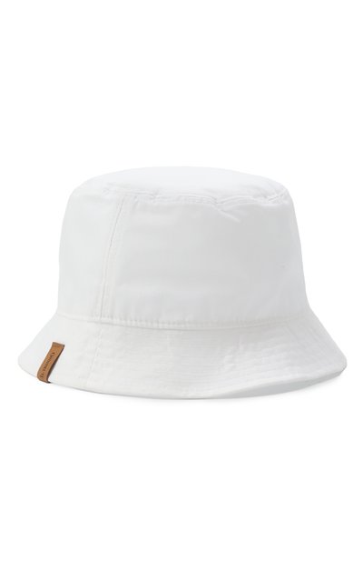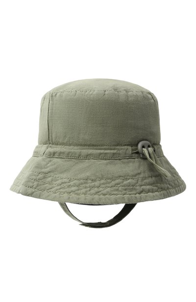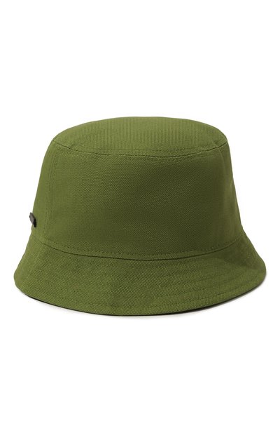 Панаму насыщенного оттенка хаки декорировали яркой аппликацией в виде лампы накаливания и надписи Good Idea. Изделие выполнили из фактурного хлопкового канваса. Такой материал сам по себе хорошо держит форму, но поля сделали еще плотнее при помощи параллельных строчек.