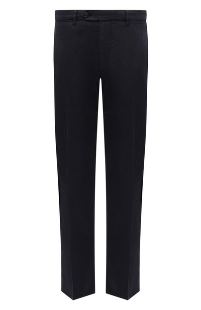 В темно-синих брюках днем можно прийти в офис с нестрогим дресс-кодом, а вечером отправится на встречу в пабе. Зауженную модель сшили из мягкого гладкого хлопка с деликатным блеском. Материал хорошо сохраняет четкость линий, заданных кроем, и поддерживает оптимальный микроклимат.