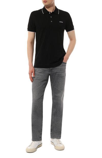 Джинсы Graduate изготовили из эластичного денима Ashen Stretch плотностью 10 унций по технологии AG Vapor Wash ™, на 65% сокращающей потребление воды. Зауженные брюки со средней посадкой и пятью карманами украсили патчем на поясе сзади.