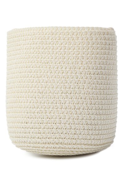 Бежевую сумку произвели в сотрудничестве с компанией Mifuko. Кенийская мастерица связала модель вручную из бумажного волокна, подтвердив уникальность биркой с автографом. Аксессуар дополнили яркими ручками из прочной текстильной ленты с контрастным паттерном в виде логотипа. Внутрь поместятся пляжное полотенце, книга, бутылка воды, смартфон.