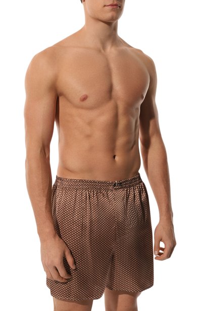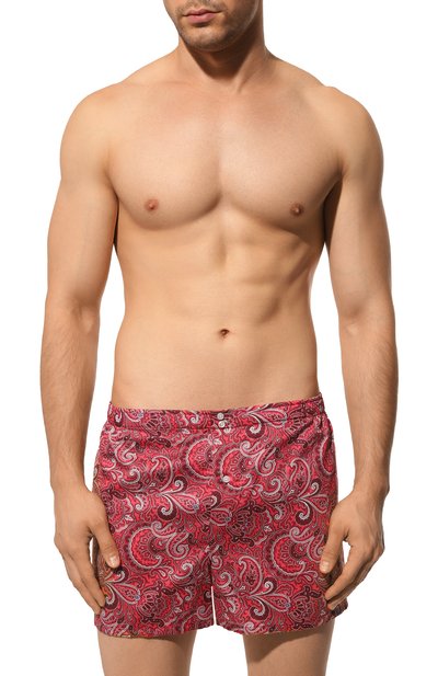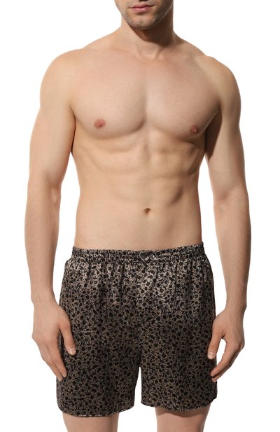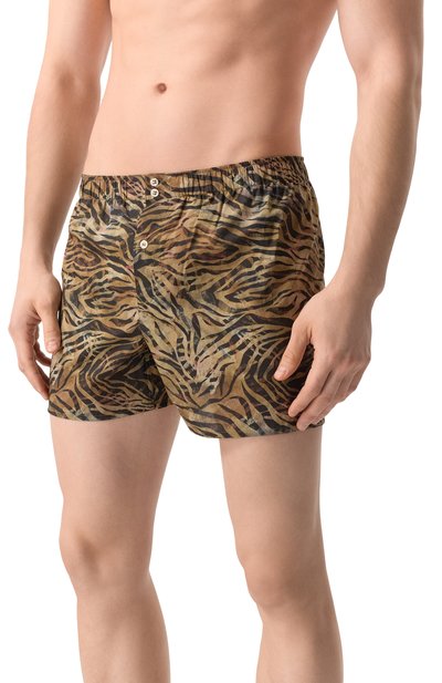Боксеры Brindisi 108 свободного кроя сшиты из гладкого шелка с набивным рисунком, иллюстрирующим двенадцать подвигов Геракла. Трусы с эластичным поясом и эргономичной вставкой застегиваются на пуговицы.