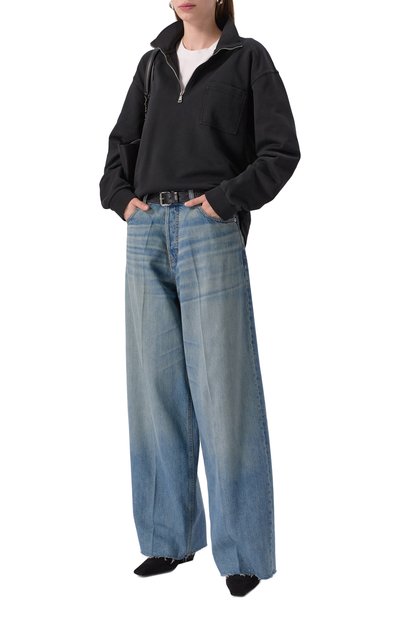 Синие джинсы Strider Heritage, визуально удлиняющие ноги, органично впишутся в повседневный образ со свитером и казаками. Для пошива слегка выбеленной расклешенной модели с декоративными потертостями по краям использовали плотный деним. Принадлежность марке обозначили знаковой вышивкой в виде крестов в тон над задним накладным карманом.