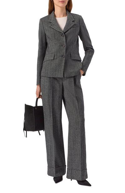 Легкий и дышащий микс вискозы и льна светло-серого оттенка адаптировал для лета базовые брюки со стрелками. У мягкой ткани, усиленной полиэстером, немного неровная фактура, поэтому меланжевый рисунок получился более выразительным. Модель с четырьмя врезными карманами дополнена парными защипами, которые делают посадку особенно к омфортной.