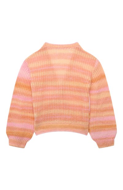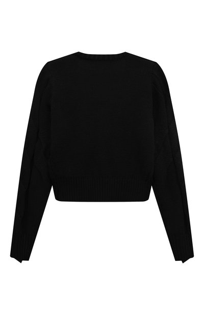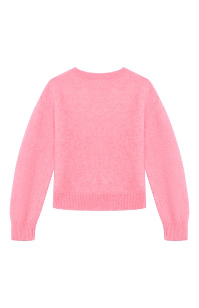 Кардиган с V-образным вырезом и расклешенными манжетами связали из нежной шелковистой вискозы, усиленной нитями нейлона. Приятный на ощупь трикотаж с рифленой фактурой хорошо тянется, но не теряет форму со временем. Модель цвета фуксии застегивается небольшой кнопкой, скрытой под аппликацией в виде распустившегося бутона розы. Сбоку — золотистая литера B.