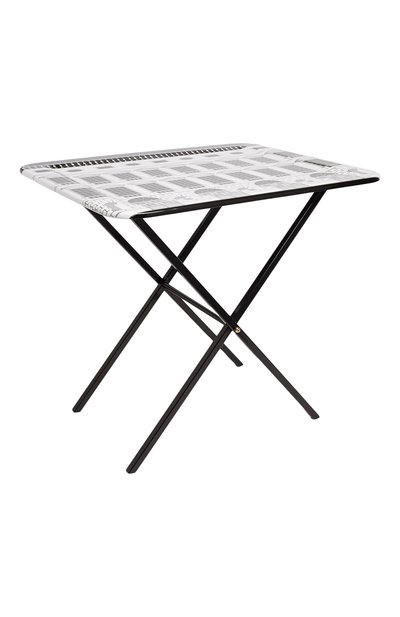 Складную подставку с прочной металлической фурнитурой изготовили из массива бука и МДФ. Поверхности изделия итальянские мастера отполировали до идеальной гладкости, окрасили и вручную покрыли лаком. Модель позволяет превратить металлический поднос Fornasetti диаметром 40 см, который продается отдельно, в миниатюрный стол.