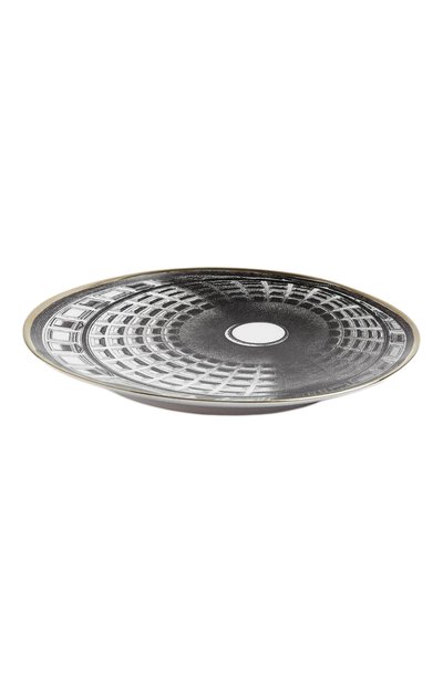 Декоративная тарелка вошла в коллекцию Cupola, вдохновленную архитектурой итальянских соборов. Выполненный вручную мотив в фирменной черно-белой гамме, отсылающей к старинным гравюрам, воспроизводит купол церкви Санта-Мария-делла-Салюте в Венеции. Узор со множеством мелких деталей обрамлен сияющим золотым кантом. Два отверстия для крепления на тыльной стороне позволяют использовать изделие как настенный декор.