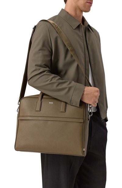 Портфель Come, подходящий для хранения, ноутбука сшили из прочной яловой кожи с крупнозернистой фактурой. Внутри разместили карман для планшета, а также открытый и закрывающийся молнией отсеки. Помимо этого модель дополнили внешним плоским отделением. На задней панели — перемычка, с помощью которой аксессуар можно прикрепить к чемодану.