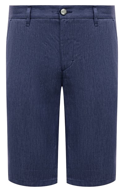 Темно-синие свободные шорты с классической посадкой и четырьмя карманами сшили из мягкого тонкого льн: такой материал отлично пропускает воздух, сохраняя оптимальный микроклимат даже в жаркие дни. Неравномерно окрашенные нити при плетении сформировали меланжевый эффек т, придав ткани сходство с денимом.