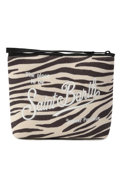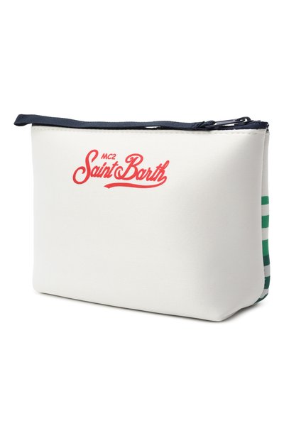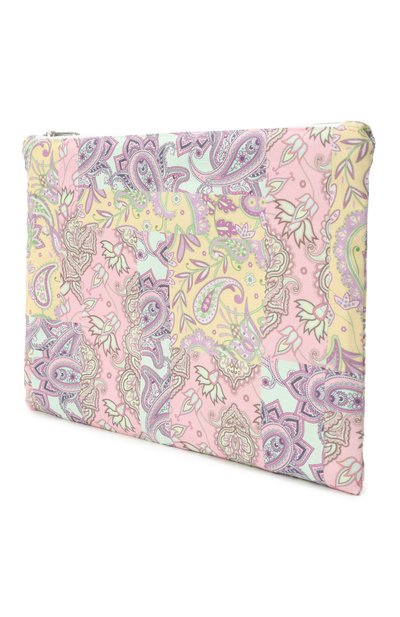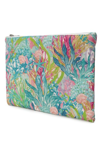 Для изготовления розовой косметички с разноцветным принтом Forte Dei Marmi использовали прочный непромокаемый неопрен, для внутренней отделки – шелковистый полиэстер, который легко очищается от загрязнений. Аксессуар закрывается сверху молнией с пуллером, дополненным текстильной ручкой петлей для запястья.