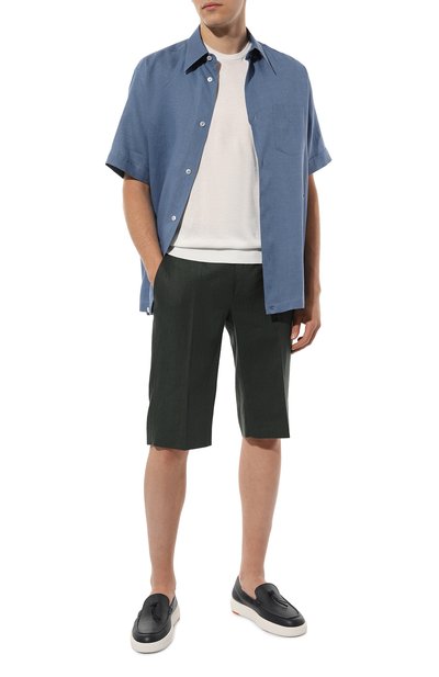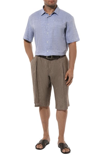 Льняные шорты органично будут смотреться и на городских улицах, и на приморской набережной. Модель с защипами, двумя боковыми и задними прорезными карманами дополнили эластичным поясом-кулиской, регулирующим посадку на талии.