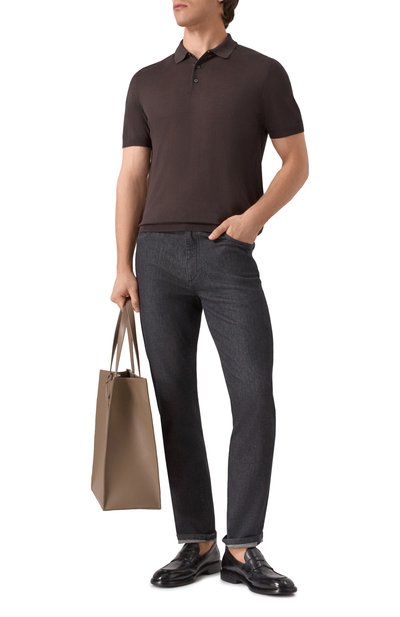 При пошиве лаконичного коричневого поло сделали ставку на мягкий трикотаж с деликатным блеском, сочетающий тонкий шелк и отборный тщательно очищенный хлопок. Модель исключительно приятно ощущается на коже и поддерживает оптимальный микроклимат. Наши стилисты предлагают создать непринужденный образ с шортами, завершив его шлепанцами.
