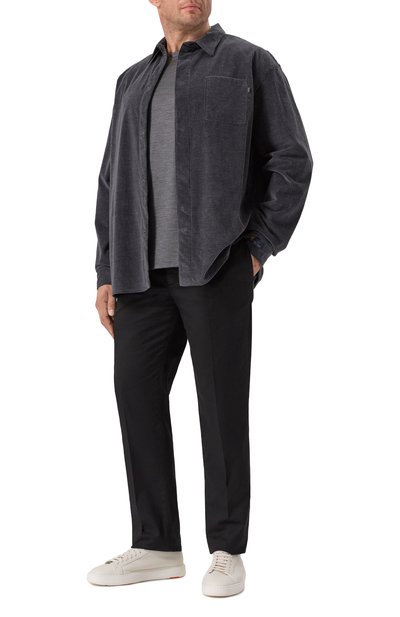 Темно-серая джинсовая рубашка с фигурными клапанами накладных карманов и кокеткой выступит в роли легкой куртки в прохладную погоду. Для пошива модели с декоративными заломами вдоль швов использовали мягкий плотный деним, не требующий сложного ухода. Наши стилисты предлагают создать повседневный образ, дополнив изделие в стиле вестерн брюками и лоферами.