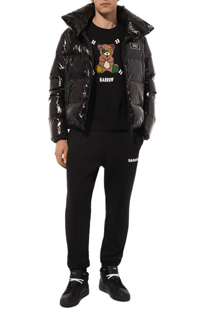 Черные джоггеры делает ярче неоново-зеленая вставка с белым логотипом марки сбоку. Модель выполнили из легкого прочного рипстопа, поэтому она не мнется и не требует сложного ухода. Изделие с двумя боковыми карманами на молниях дополнили широким эластичным поясом со скрытой кулиской.