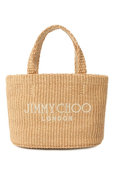 Сумку EW с вышитым логотипом марки спереди выполнили вручную из гибкой рафии и укрепили текстильными лентами грогрен. Аксессуар с двумя короткими ручками дополнили съемным плечевым ремнем из гладкой кожи.
