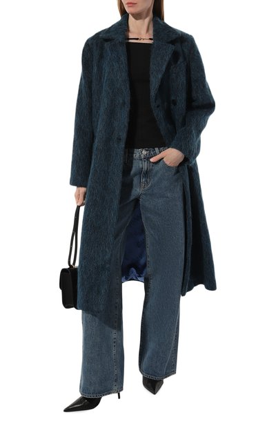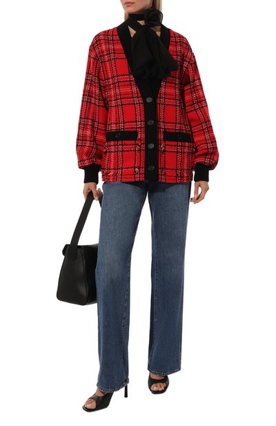 Широкие расклешенные джинсы с высокой посадкой выглядят, как ностальгия по 1980-м. Для изготовления модели с декоративными заломами и потертостями использовали неэластичный деним. Принадлежность брюк с вышитыми сердцами на накладных карманах марке обозначили патчем на поясе.