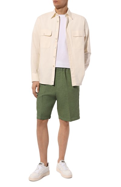 Шорты Randle цвета хаки выполнили из приятного на ощупь хлопкового трикотажа с фактурной изнанкой. Модель длиной до колена получилась не только дышащей, но и легкой (ее вес всего 250 граммов). Изделие с поясом-кулиской и тремя карманами украсили спереди белым вышитым логотипом марки, а сзади — брендированной нашивкой.