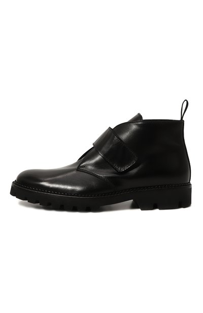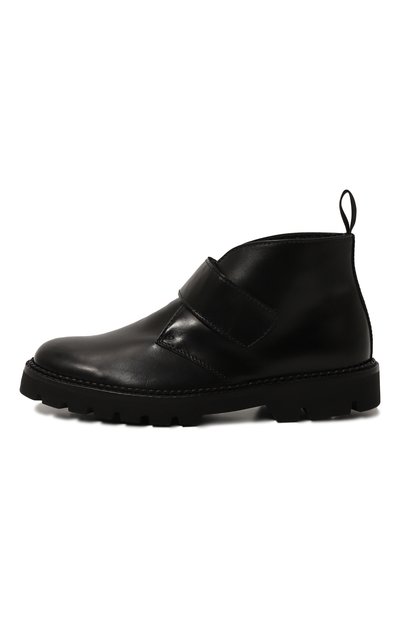Черные ботинки – комфортный вариант для капризного межсезонья. Для пошива модели с регулируемым ремешком велкро на подъеме использовали гладкую кожу с полуглянцевым блеском. Внутренняя отделка из мягкого текстиля на основе отборной шерсти хорошо сохраняет тепло и быстро отводит влагу. Широкая подошва позволяет без опаски шагать по лужам и защищает от скольжения на мокрой дороге.
