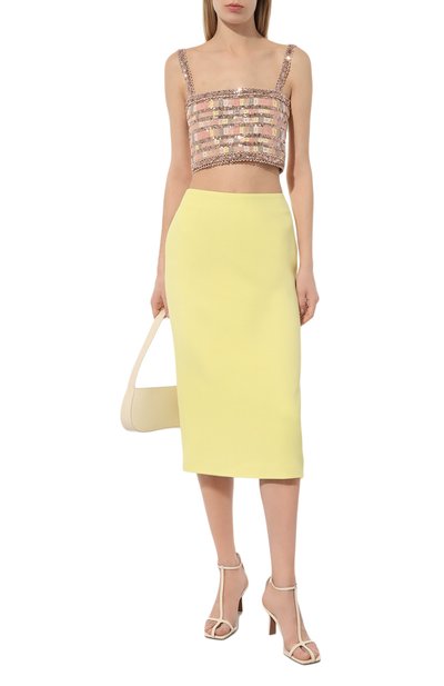 Юбка-карандаш кремового оттенка поддержит образ разной степени сложности. Для пошива модели с потайной молнией сзади Эли Сааб выбрал легкий тонкий материал на основе нежного шелка и гладкой вискозы. Ткань почти не мнется, поэтому изделие долго выглядит идеально.