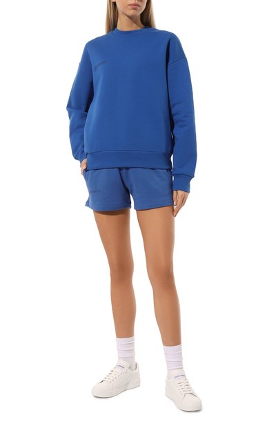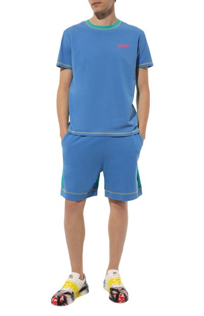 Голубые шорты сделают комфортными и прогулки по городу, и отдых на морском побережье. Свободную модель с поясом-кулиской, регулирующим посадку на талии, сшили из мягкого хлопкового трикотажа. Материал хорошо пропускает воздух и немного тянется, поэтому изделие с разноцветным принтом снизу поддерживает оптимальный м икроклимат и не сковывает движения.