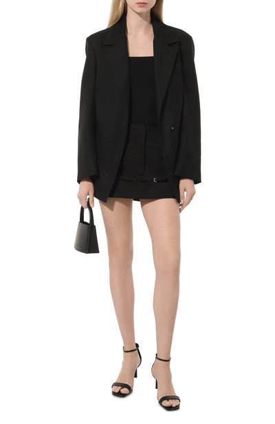 Укороченный черный топ-бюстье поможет продемонстрировать идеальную осанку. Для изготовления модели использовали эластичный рифленый трикотаж из мягкой дышащей вискозы, поэтому она комфортно облегает фигуру. Блестящий акцент изделию добавляет крупная серебристая пряжка Oval D, которой инкрустировали вырез спереди.