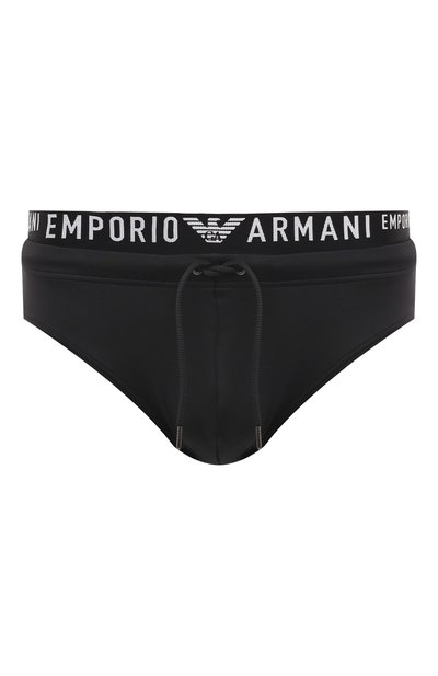 Для изготовления черных плавок, напоминающих брифы, использовали шелковистую эластичную микрофибру. Материал из переработанного нейлона быстро сохнет, не раздражая кожу, и не вытягивается, надолго сохраняя безупречный вид. Модель с регулируемым поясом-кулиской дополнили вставкой из стрейчевой брендированной ленты, как у белья.