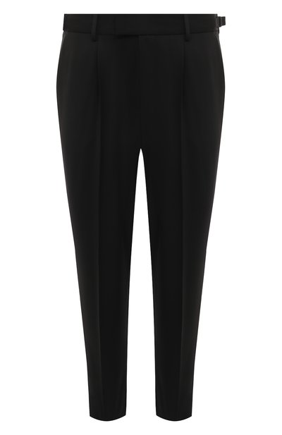 Зауженные брюки с четкими стрелками и регулируемыми ремешками на поясе сшили из смесового твила. Модель с четырьмя карманами и защипами спереди предлагаем сочетать с рубашкой и лоферами.