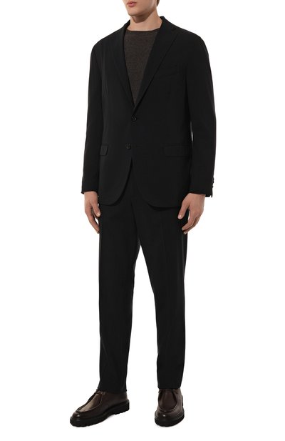 Темно-синий однотонный костюм – классика делового дресс-кода. Для пошива однобортного полуприталенного пиджака с двумя шлицами и прямых брюк мастера марки, основанной Хуго Фердинандом Боссом, использовали тон кую стрейчевую ткань Performance. Материал из прочного полиэстера и легкой дышащей вискозы не мнется, не подвержен пилингу и оптимально тянется, поэтому изделия из него садятся точно по фигуре и будут выглядеть безупречно, даже если их только что достали из багажа.