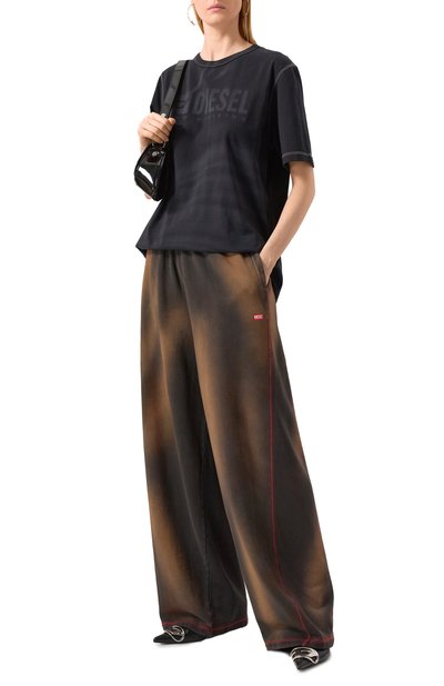 Свободные коричневые брюки в пижамном стиле органично впишутся в непринужденный повседневный образ с рубашкой. Для пошива модели с растительным мотивом на размытом фоне использовали тонкую шелковистую вискозу, которая едва ощущается на теле, хорошо пропускает воздух и почти не мнется. За удобную посадку на талии отвечает широкий эластичный пояс.