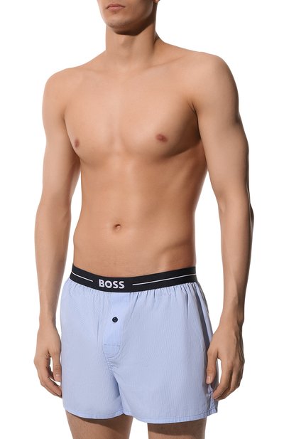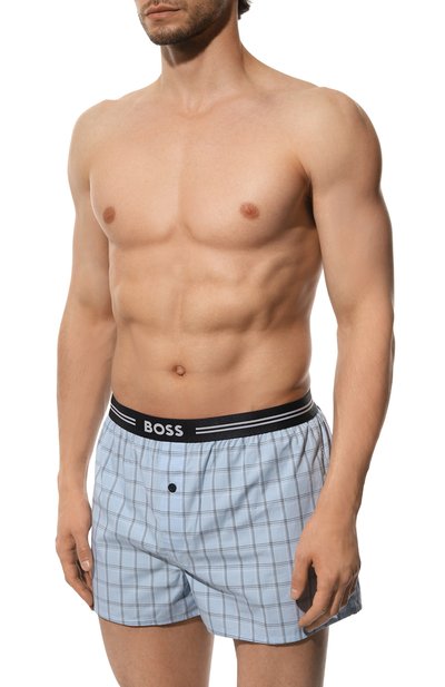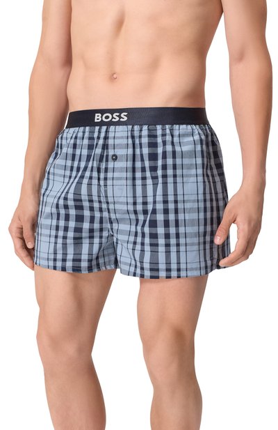 Боксеры с эластичным брендированным поясом выполнили из хлопкового поплина. В комплект включили три модели: клетчатую, полосатую и однотонную.