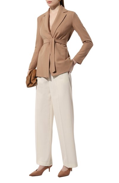 Для создания туфель-лодочек Robbie выбрали тонко выделанную замшу, а для внутренней отделки – мелкозернистую кожу. Пару с неглубоким вырезом установили на шпильку средней высоты.