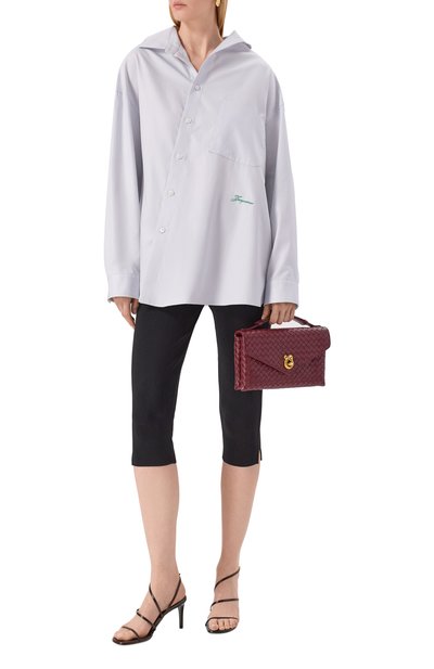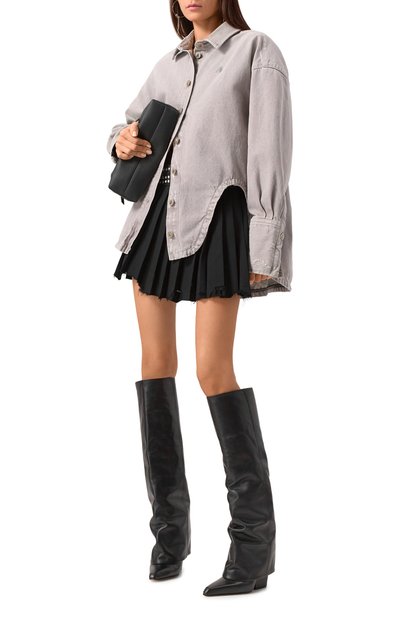 Мастера итальянской марки выбелили подчеркнуто свободную рубашку, поэтому изначальный графитовый оттенок денима сохранился лишь в виде небольших случайных разводов. Изделие с молниями на врезных боковых карманах сшили из плотного органического хлопка.