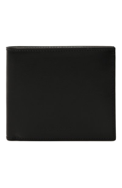 Для изготовления черного портмоне двойного сложения использовали гладкую матовую кожу. Из серебристого металлизированного материала выполнили внутреннюю отделку. Аксессуар состоит из двух отсеков для купюр, четырех слотов для кредитных карт и кармана с клапаном, в котором удобно хранить монеты.