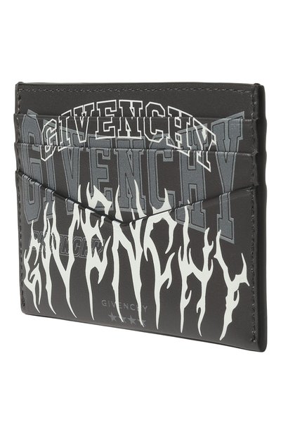 Серый картхолдер декорировали с обеих сторон принтом в виде напоминающих граффити логотипов, словно наслаивающихся друг на друга. Для изготовления модели использовали гладкую мягкую кожу, устойчивую к появлению заломов. Аксессуар с шестью слотами для банковских карт дополнили центральным карманом, в котором удобно хранить чеки.