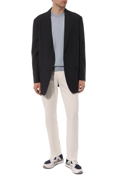 Яркие кроссовки Jago в стиле color block выполнили из текстиля с различными фактурами, укрепив модель деталями из гладкой тонко выделанной кожи. Изделие с петлями из ленты грогрен украсили объемной нашивкой с контрастным логотипом марки, основанной Томом Фордом. Пару установили на гибкую скульптурную подошву, пружинящую каждый шаг.