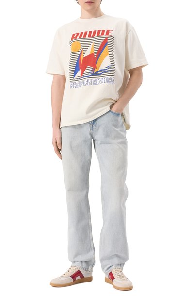 Кремовые кеды Jackson с гибкой легкой подошвой выполнены вручную из комбинации гладкой телячьей кожи и прочного непромокаемого нейлона. На мысе — фактурная текстильная вставка, которая пропускает воздух внутрь обуви. Модель украшена небольшим тисненым логотипом бренда, основанного Томом Фордом, сбоку и фирменным патчем на язычке.