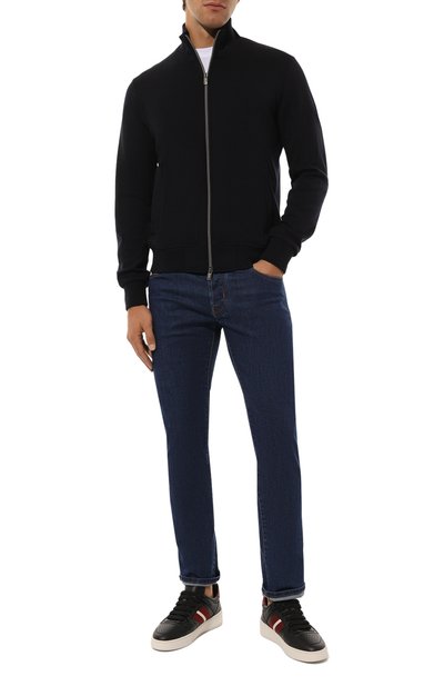 Черные кеды Jackson получились исключительно комфортными. Том Форд выбрал для пошива модели мягкую фактурную замшу, которая быстро подстраивается под особенности стопы и делает обувь более легкой. Из такого же, но белого материала выполнили Т-образную вставку по бокам. Модель с золотистой фирменной монограммой поставили на гибкую литую подошву с противоскользящим протектором.