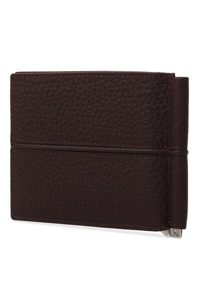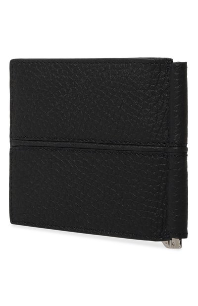 Для изготовления черного зажима для купюр использовали мягкую кожу с тиснением под крокодила, дополнив деталями из золотистого металла. Принадлежность марке подчеркнули небольшим логотипом на передней панели, нанесенным методом термоштамповки. Внутри предусмотрели восемь слотов для кредитных карт.
