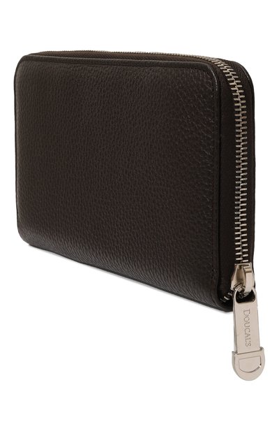 Красный миниатюрный кошелек, застегивающийся на круговую золотистую молнию, сшили из прочной мягкой кожи с крупным зернением, подчеркнутым глянцевым блеском. Внутри аксессуара разместили два отделения, в одно из которых удобн о складывать монеты, а в другое — сложенные банкноты или кредитную карту.